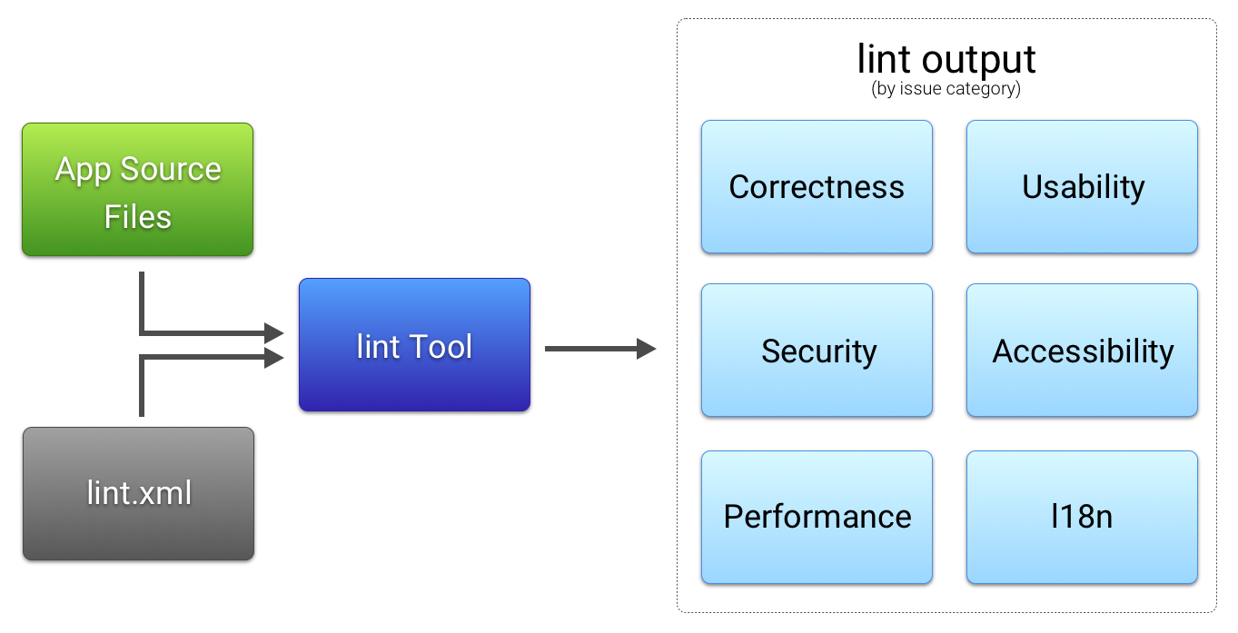 The lint tool checks your Android project source files for potential bugs and optimization improvements for correctness, security, performance, usability, accessibility, and internationalization.